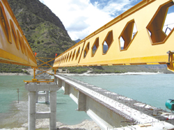 顺利实现第一个节点目标,进一步增强了项目团队必胜的信心和决心。继4月23日全面完成大桥下部结构施工后,项目部积极准备制架梁工作,进行制梁场地的平整硬化。与此同时,他们大力开展员工的技能培训,采取师带徒、安排技术人员、聘请厂方技术人员等方式,先后举办技能培训班8次,共培训钢筋工、混凝土工、架子工、木工、架桥机操作手和维修工等急需工种150余人。4月底,制梁工作准备就绪,经业主一次验收合格达到使用条件。由于林芝地区地处西藏境内,属高原气候,每年年初昼夜温差较大,最冷的时候达到零下10度左右,过了12月份混凝土工程基本不能施工。为确保在有限施工时间内完成大桥建设任务,5月1日,项目部再次掀起“大战214天完成全桥制架梁”的施工生产高潮。在制架梁过程中,项目部按照制架梁总体控制工期倒排任务,将实物指标细化到每天、每个班组、每道作业工序,推行班组、工序完工考核制度,大大促进了制架梁工作。5月3日成功预制第一片T梁,6月22日开始全桥架梁工作,11月30日全面完成架梁工作,各项工作有序推进,从基础施工至全桥制架梁完成历时383天,打破了林芝地区桥梁建设纪录,受到各级领导的好评。