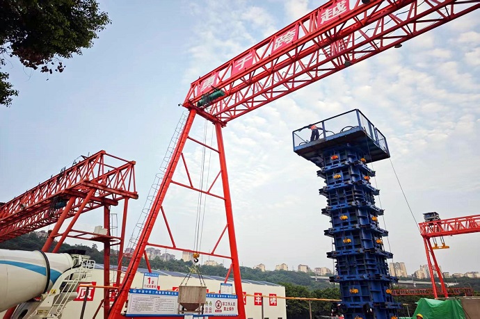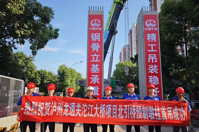 泸州龙透关沱江大桥北引桥预制墩柱首吊告捷